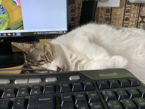 I’m still waiting on the final version of the book I’ll be copyediting…starting next week, I suspect. I’m running out of days before I go back to school…like always! I hate that. Summer is a discombobulation. I swear, all these cats do is sleep.
