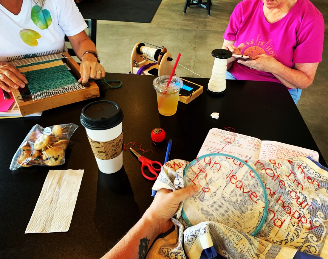 I spent three hours in the afternoon creating things in a coffee shop. Two knitters showed up later…