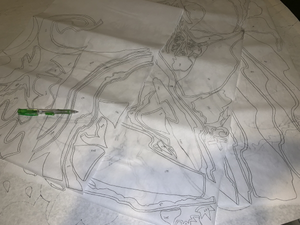 I traced for about 2 1/2 hours or so. I’m a little over 5 hours in with about a 1/3 traced. So I guess I have 10 more hours to go. That’s gonna take a little longer than I thought. The plus is that I lost one event on Saturday, so I can trace for a while…maybe even while listening to the videos I have to grade? Maybe? But gym tonight and plans tomorrow night…so maybe I won’t be done until Monday. Yikes. Time is always tight. I work best with a hellacious deadline apparently.