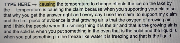 This is where my brain said, no, stop, you can’t, you don’t even know what to write in response because none of it matches up to anything you gave them. Well, we did do a lab called Growing Air and the smiling thing is a balloon I drew a smiley face on so they could see if it grew or not and we did talk about solids and liquids, but that was the other assignment. So I took a deep breath, remembered that this child has a significant understanding problem (maybe we should do something about that, but I don’t know where to start? Well, I do…), wrote her a solid response and invited her to tutoring. And then I quit for the night. Because I couldn’t. Not any more.