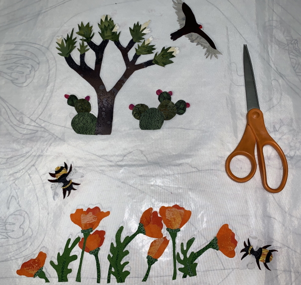 I wanted to get further last night, but these are tiny fussy things. I got about half of the 600s ironed…maybe a little more than that. I have another couple cactus to iron and then the monarchs…speaking of fussy. A rattlesnake, a bunch of toes, legs…and then that’s it. I have a science meeting after school today, though. I wanted to be ironing to the background tonight and I’m having to revise my plan. I suspect I’ll be lucky to get to that. So I’ll hope I get it all ironed together tonight…I’m still on track, still OK. Mostly. Still tired. Still got too much work to do. Still wondering what I’m working on next. Still don’t know what to get my dad for his birthday. All the things in my head. Plus I want to read my book. And be healthy enough to go to the gym. Ugh. One thing at a time…well…unless I can do two.