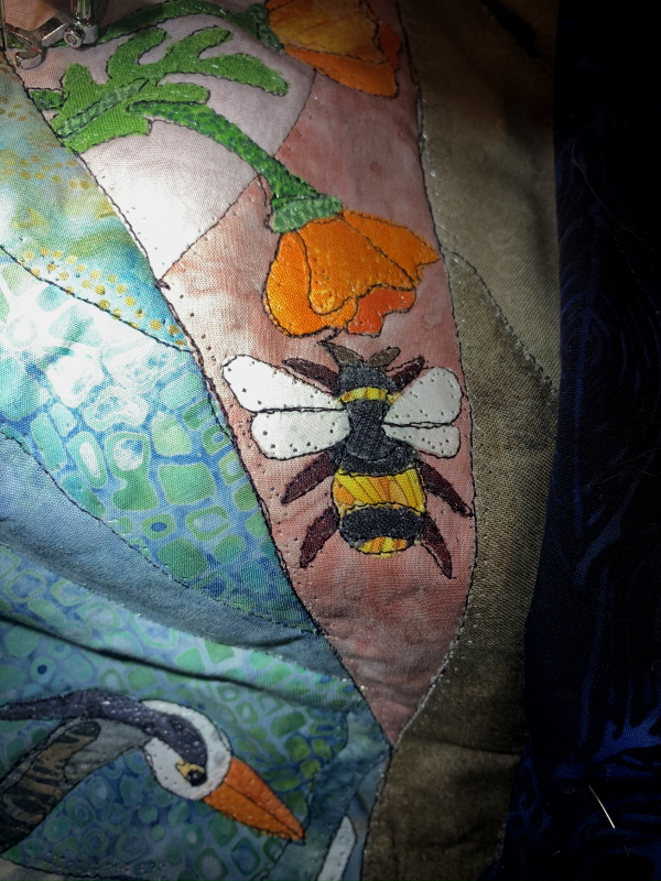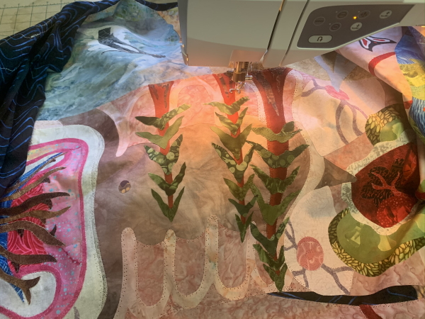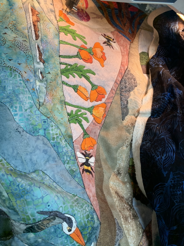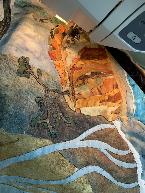 And that’s what I did, more music blaring, for the next 2 1/2 hours…quilted a little Torrey Pines cliffs…