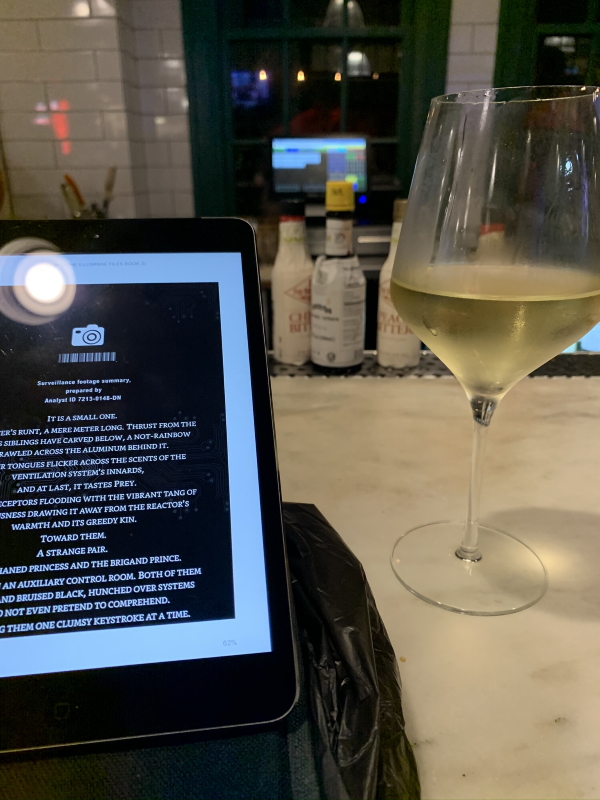 I knew there was no food in the house (that I wanted), so I headed over to Liberty Public Market, had a glass of wine, and read my book while I contemplated the chaos inside and my food options.