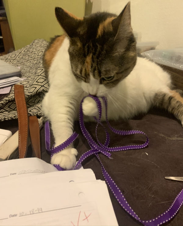 I did tutoring after school. Then I went and picked up my quilt from the photographer. I did something very intelligent with the flash drive with the photos (can’t find it. I was tired. I’ll find it later.). Then I graded stuff, cooked dinner, graded some more. Kitten helped.