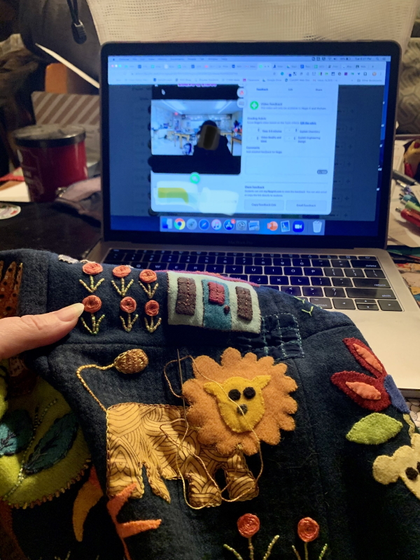 So I have 32 videos to watch today. Ugh. This is how I did it yesterday. Headphones on (until I had to move to the desktop because the internet was being cranky), stitching going…