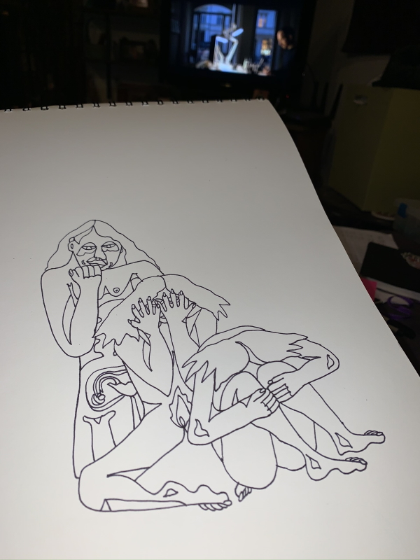It was busy. But I did get the last bit of the grading done on that project, so that was good. Oh yeah, I drew Saturday night. I made myself. I was exhausted. But there’s a piece in my head that happens to be next on the list. This is a very rough start to it…
