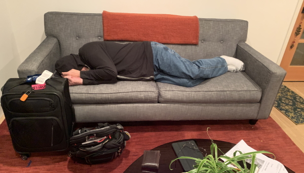 It was a longish day of travel…we were up early…so the man crashed out for a couple of hours. He needed it.