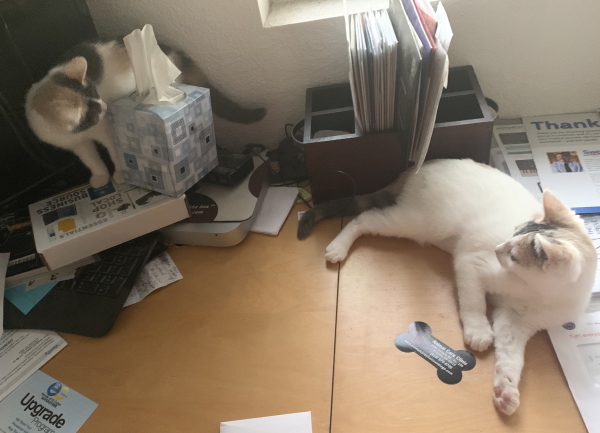 And then we were home…the man left to go get the babies, who got spayed last week…and are quite recovered. They look sleepy there, but that was after 3 hours of rampaging around the house…