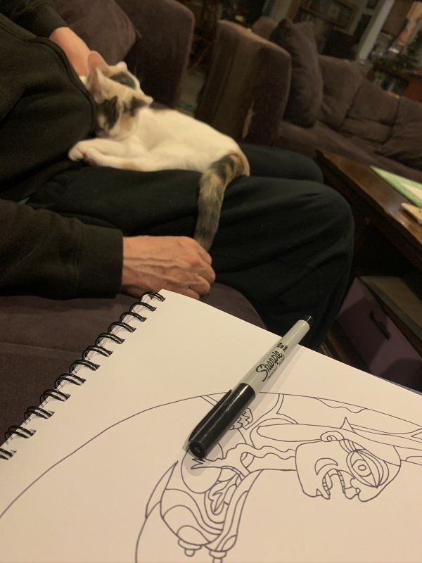 It’s hard to draw with a kitten in your face.