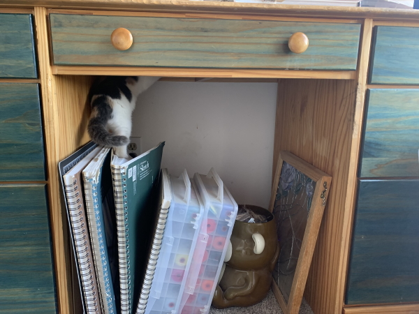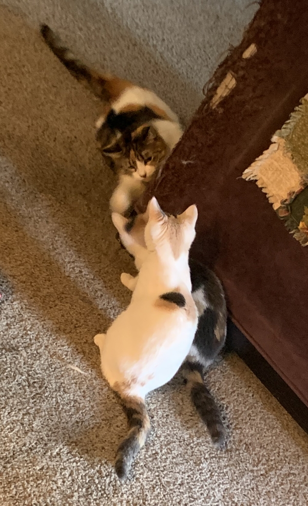There was no hissing here…just play bopping. And this was after Nova went after Kitten’s tail, which was swishing around quite temptingly.