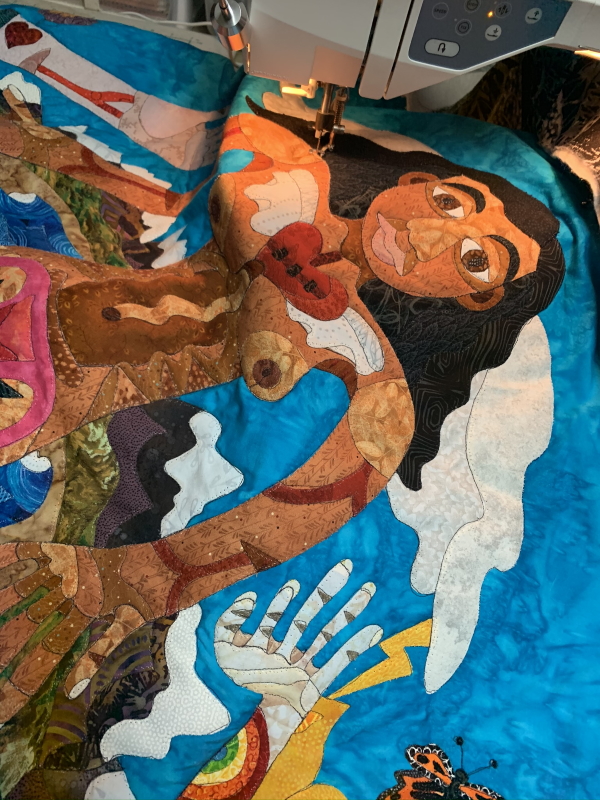 OK, I have two quilts to deliver, a binding fabric to buy (no, I don’t have enough of anything to use for binding), and pilates class…plus grading. I did one period of the UGH assignments (it’s really two assignments put together) yesterday. It took about 2 1/2 hours, but I wasn’t really paying attention well and I will get faster. Or not. I don’t know. Four more periods of those to go…really need to do one a day. Plus decide what art I’m making next. Oh yeah, recap of 2019…only 6 quilts, but 1 was huge…
