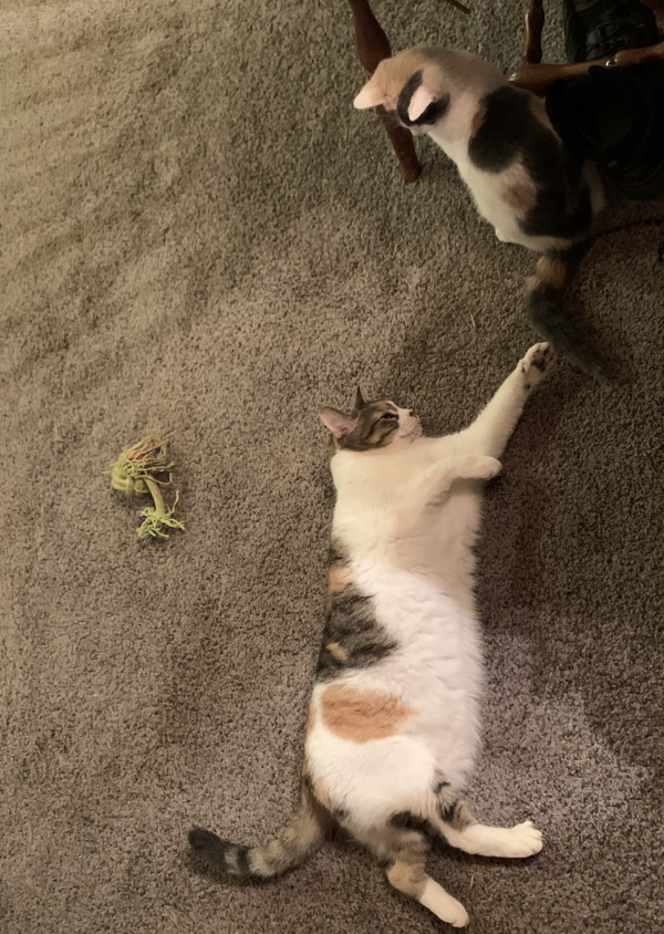 Even when they’re rampaging around, destroying things. Which is something they do. When they’re not considering playing with the old lady cat…