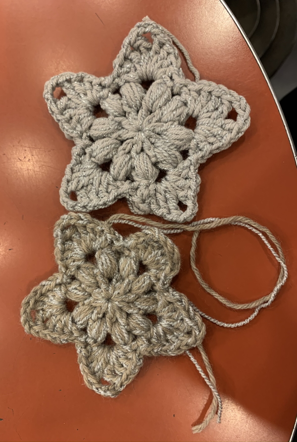 Anyway. That was today. Last night, I hung out with one of my stitching groups…Julie is crocheting next year’s Christmas ornaments, which is very organized of her…