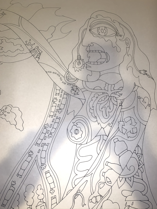 What I did instead was finish the drawing (finally!) and number it. I need to be working on something artistic right now. The drawing is the hardest part, and I was so close to done. There’s a space where I look at it and think, there’s nothing else that needs to be on there. All the spaces are appropriately filled. It took 6 1/2 hours to do that…it’s about 36×48″.