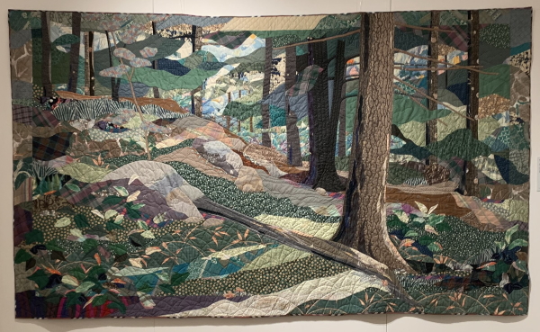 Not quite a hike, but time together anyway. After all that and some food, we headed out to Visions Art Museum for their current opening…Ruth McDowell’s use of fabrics, especially big, bright, and crazy prints, has always fascinated me…
