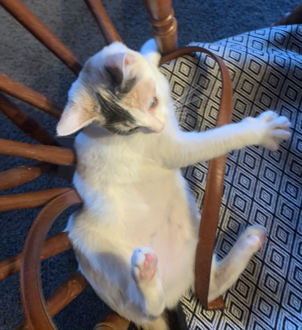 She’s definitely got some attitude…and crazy energy. They mostly sleep all day and then she goes nuts at night. Usually I just let them race around when he goes to bed early, but he was up late and she was getting in his stuff and being destructive. She’s out and rampaging a little this morning…maybe she’ll get it out of her system before nighttime.