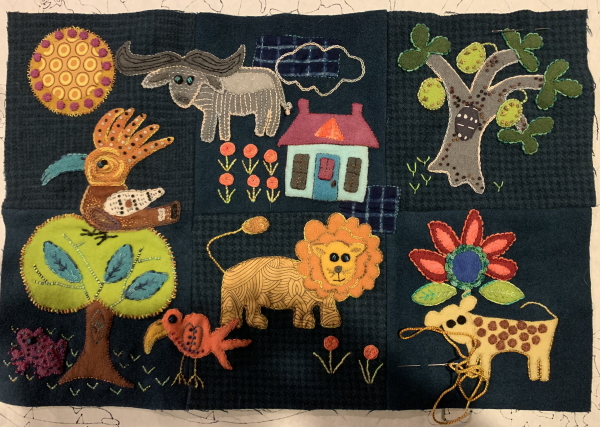 The cheetah is part of the October blocks (it was a block-of-the-month thing), so I think after I embroider this and the other two blocks for this month, I put the whole thing together and start doing borders. Finally. There’s a bunch of filler embroidery that needs to go one before I can do that though…a road and a ton of grass. It’ll be a while.