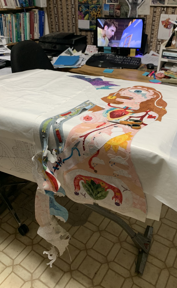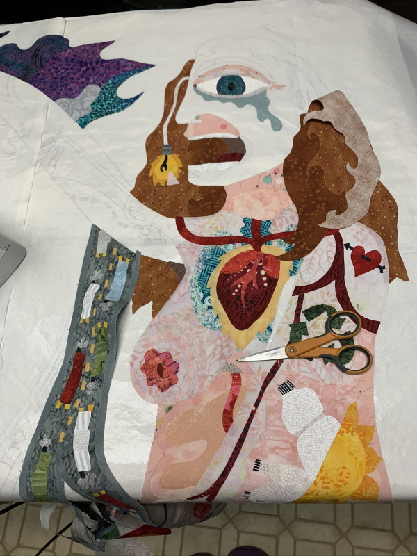 That’s how far I got last night…almost done. So today, I need to ship my quilt to Fantastic Fibers before San Diego goes into secure lockdown, or whatever they’re going to call it. They say they will put up the show if the quilts get there, and I’m afraid if I wait any longer, the UPS place will be closed…or I won’t be able to ship. So I’m sending that today. And then I’ll work on ironing tonight again. Plus some reading. Some exercise…find the free weights and a good video or two. I think my gym provided some. And more thinking healthy thoughts.