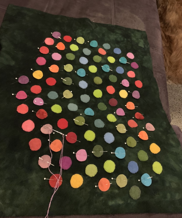 There’s been some stitching…I mindlessly sewed all 90 dots down…