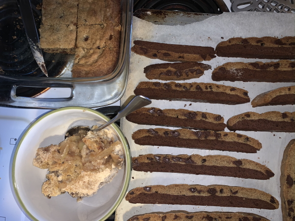 And lastly, the comfort foods. Yesterday, three of us each made one…boychild top left, girlchild fancy ones on the right, and mine on the bottom left (I don’t eat chocolate)…