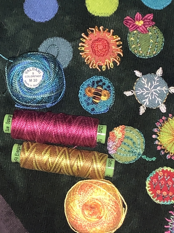 Here’s the closeup…yes, all the photos are taken at night and they aren’t great, but I can’t be bothered to leave the thread out (and forget where it came from, because I’m still borrowing from kits, plus the cats like to play with the balls and spools) and photograph in the morning.