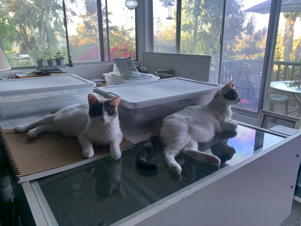 It was hot Saturday, so the cats did a lot of sleeping and let me do a lot of tracing…