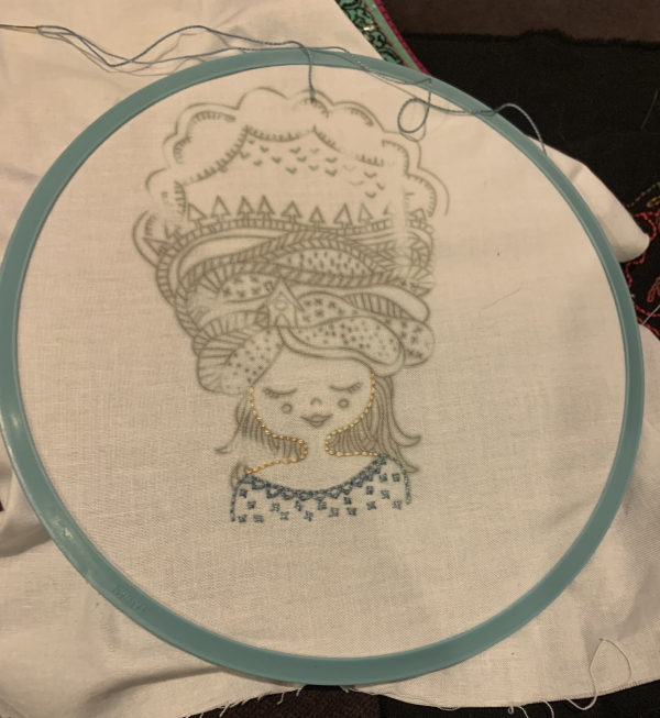 I have a shit-ton of work to do for school this afternoon, so we’ll see what I get done. When I had finished the other embroidery, I didn’t have the next one ready to go, so I pulled this out of the pile and started on it while gaming.