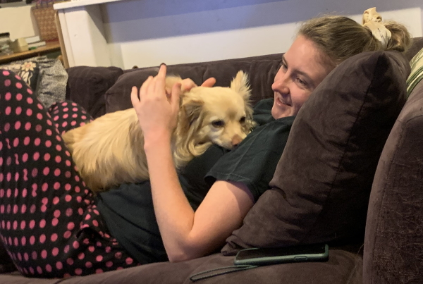 Simba loves the girlchild. She does not love his ticks.