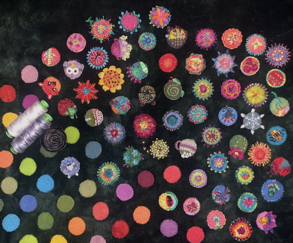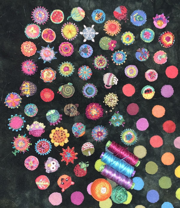 Dots! It’s the blue flowers above the magenta spool.