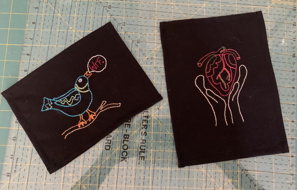 Sigh. I cut some stuff out Saturday night, but work and packing up art (oh wait, I packed up art for my Patreon patrons…but forgot pictures of two of them. Oh well.). Here’s two of them.