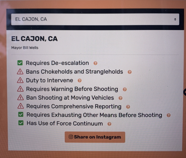 Sigh. Interesting though, since we had issues back in 2016? I think? When an unarmed black man with some issues got killed for pulling a vape pen. Yeah. Not sure if the three green checks were in place before that. Certainly we have some issues still. We had a curfew last night, after one night with no curfew. National Guard has been called out to our neighboring city, La Mesa, because of issues with an over-zealous cop and a black man. It’s time for change. It’s been time for change for a really really long time. Let’s actually do it this time. I vote. Do you vote? Vote for people who want and will make change.