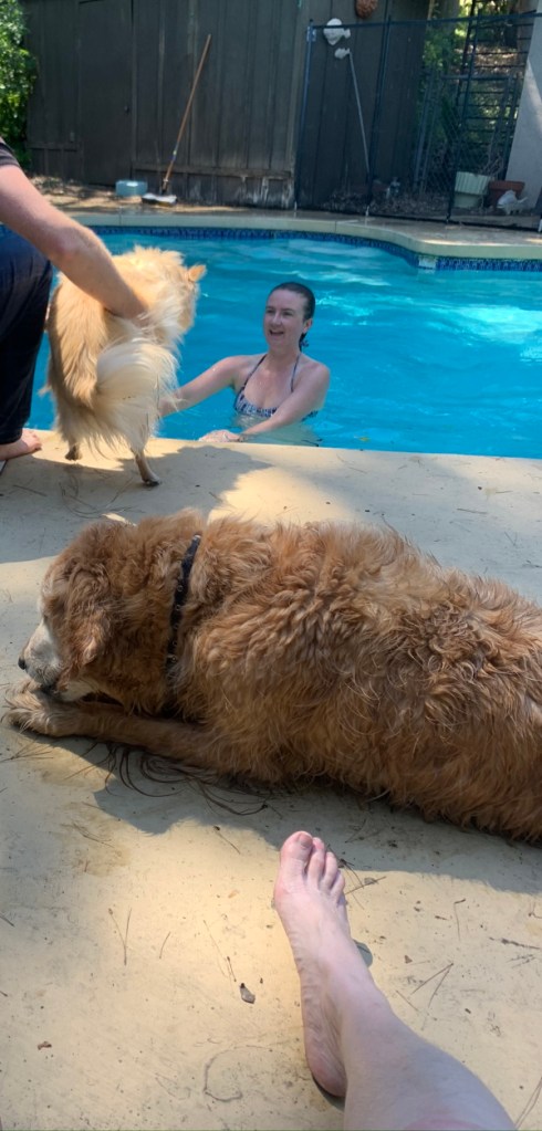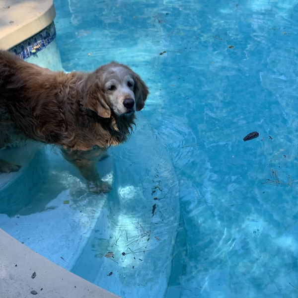 What else? The old lady likes to fetch (but not very far) pine cones out of the pool. This one is too far. she wants me to move it closer.