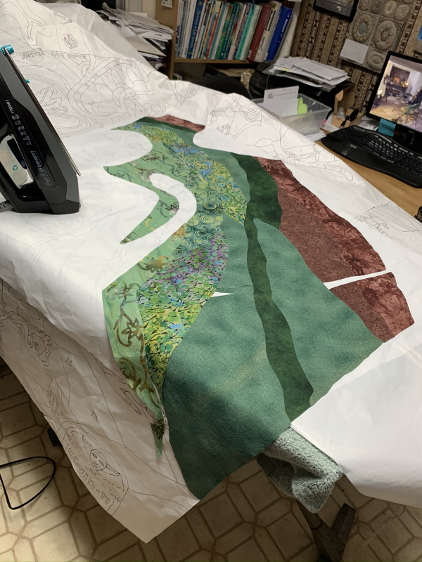 This thing is huge. Have I mentioned how huge it is? I had all these background pieces lying around, so I just ironed them together for now, and I’ll combine them with Figure 3 when I get to her…