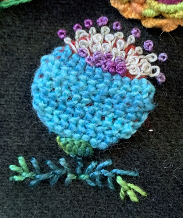 This is the bottom right corner with a gravestone to Covid…I did that while on a stitching Zoom…
