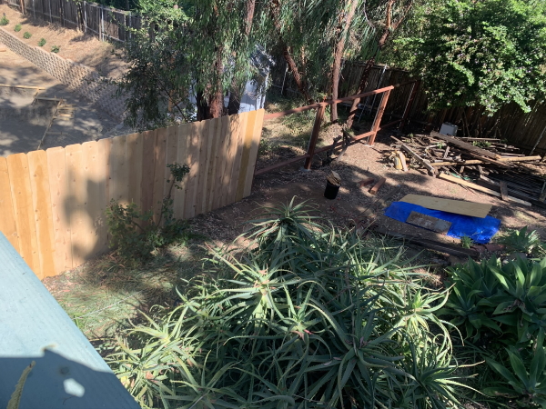OK 24 hours is probably not realistic. We did actually finish up the last bit after this photo. Fifty feet or so of new fence. We still need to get rid of all the old wood. And then build a privacy fence in the front yard. Later. In July. Seriously. I’m fenced out.