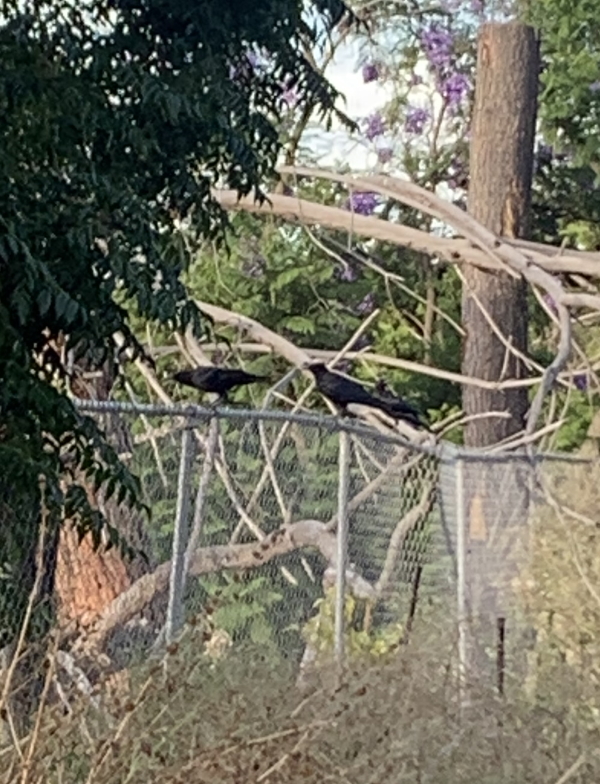 There were crows on my walk…all on the path and then started hopping up to the fence…