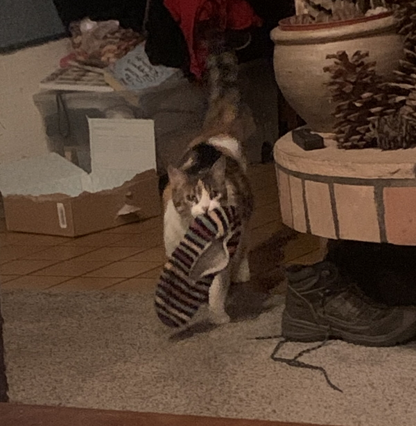 It’s very strange. Almost as strange as Kitten fetching me slippers again. She meows really loud (with the slipper in her mouth) and brings it from the bedroom and then usually drops it about 6 feet from me.