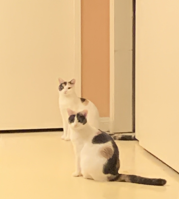 These two are waiting for their daddy to get out of the bathroom. They do that a lot.