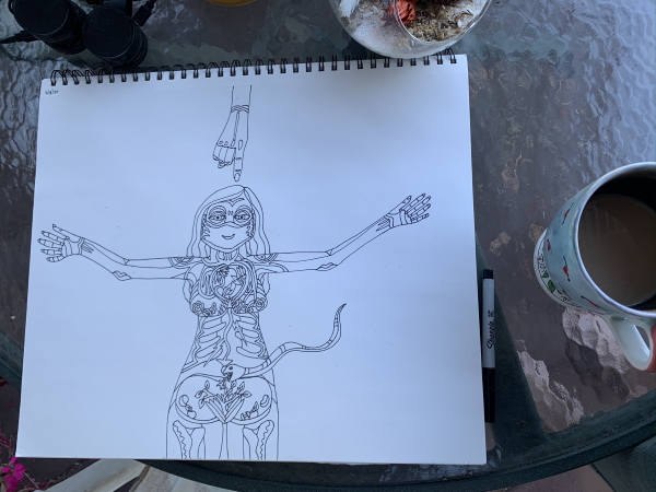 So Saturday was a tense day. I couldn’t get my head out of school. I finally went out on the deck and drew for a while…