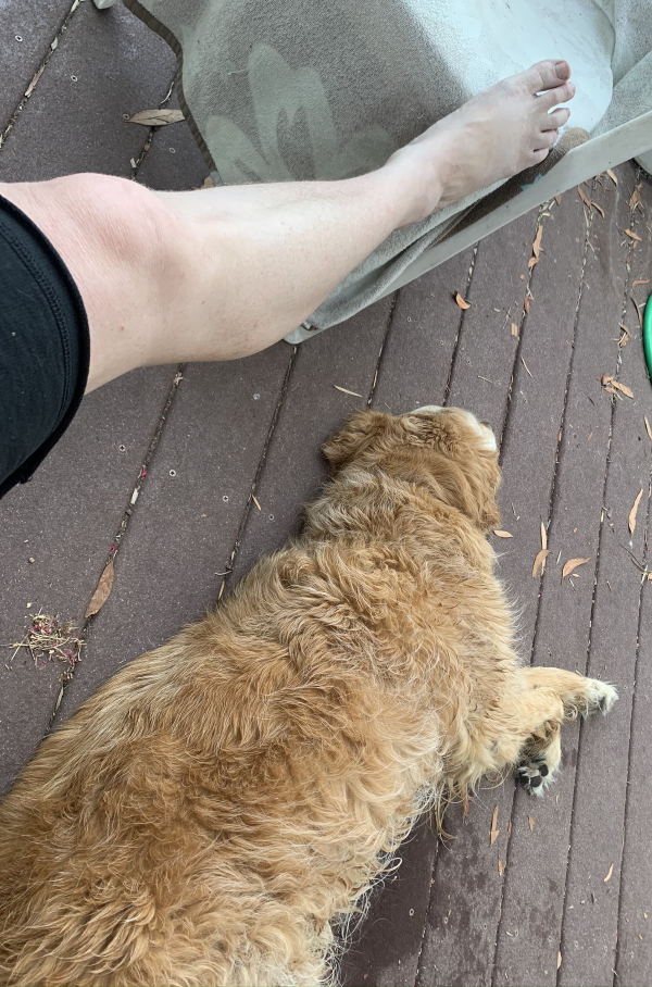 Then we sit out on the deck until she dries off a little. I was doing bread prep during this time, so I kept getting up and going inside to mix something or so stretch and folds, but often I try to make it a break in the day, so I will read. Sometimes I don’t have the brainpower for reading, though. We all get that way. It has to be later in the afternoon, or the deck is too damn hot, so it will hopefully correspond to ‘after school’ times.