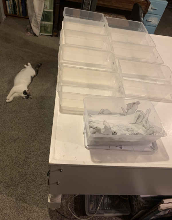 Nova wanted pets, so I did that first. Then sorted…it only took 43 minutes, and that was with a dog-peeing break in the middle.