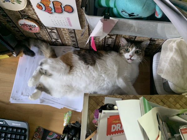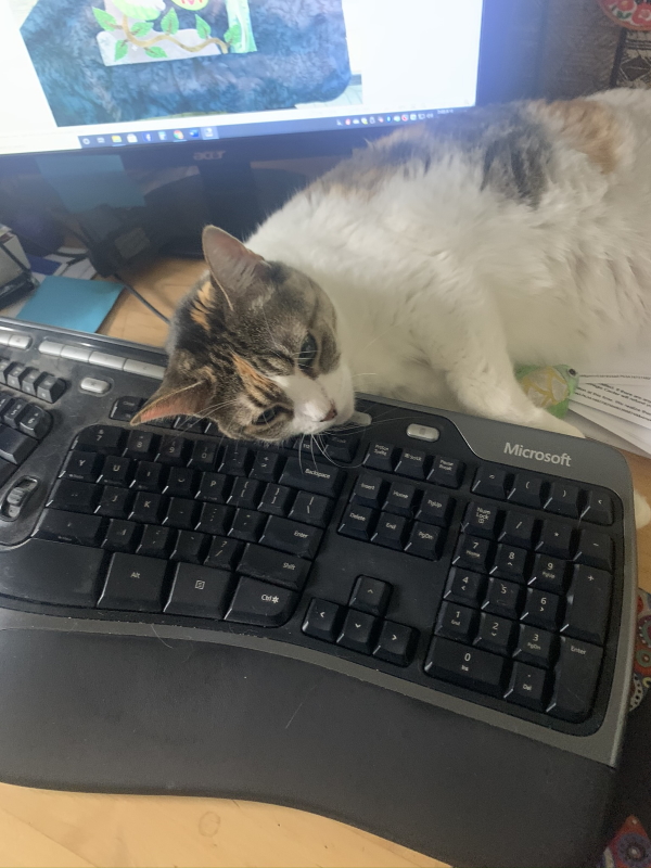 She mostly sleeps, but sometimes is in my personal space a little more than I need her to be.
