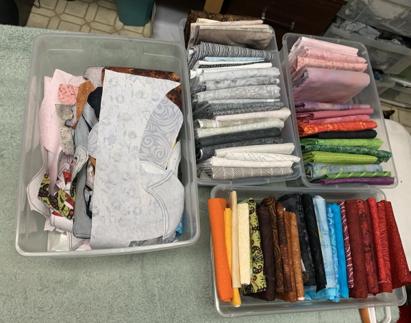 Monday night, I did the crazy thing of picking all the flesh fabrics for the largest figure…and these are all the pieces that WEREN’T flesh colored…
