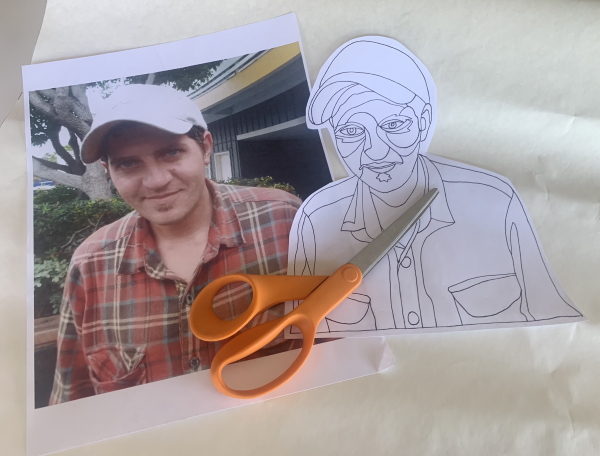 I traced his face, and then went and got it enlarged about 150%. Then added it to a larger background.