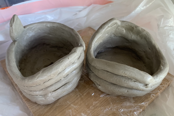 I used to do ceramics in school and then for a bit after, but I think before the divorce? Or maybe just after? It was hard to find a studio and the time, so it just didn’t happen. Anyway, on Saturday, a super dry and hot day, I started finally. Sliced into the clay, started trying to roll coils and stick them together.