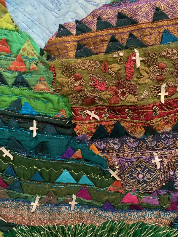 Thanks for sharing the landscape quilts, I am currently fascinated by them. Stratification? The addition of the little points is intriguing too.
