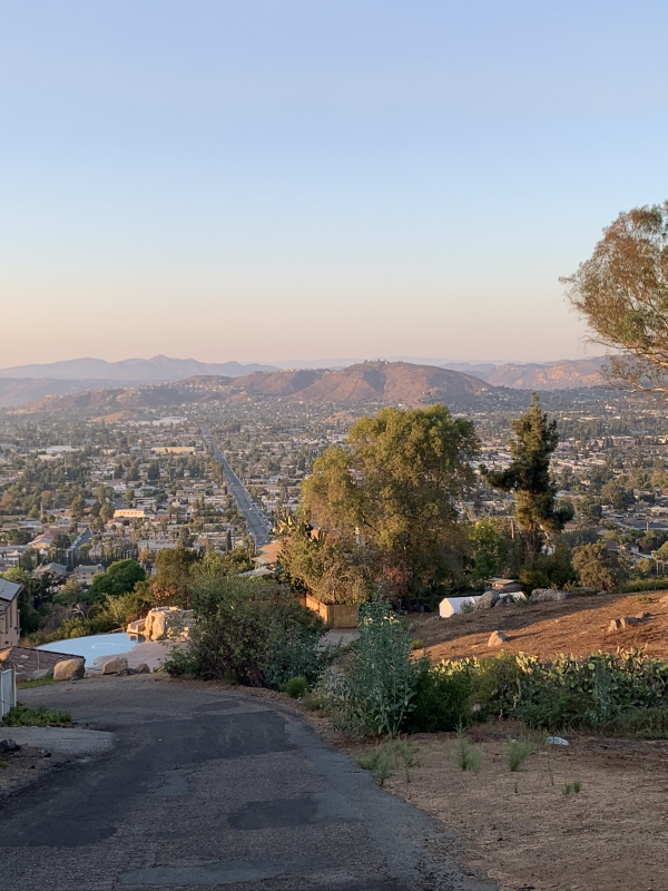 Is it Halloween? I even left later and was walking in dusk, which isn’t a bad thing right now. The view of the valley with a bit of haze…school is down there somewhere.