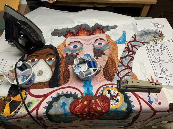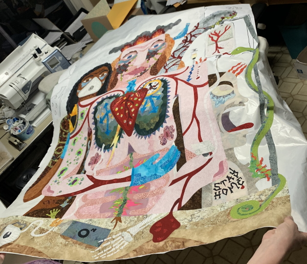 Now I just need to iron her to the background, stitch down, then sandwich and quilt and bind. All of which I am free to do now. (Note to self: don’t take on any other shit right now.)
