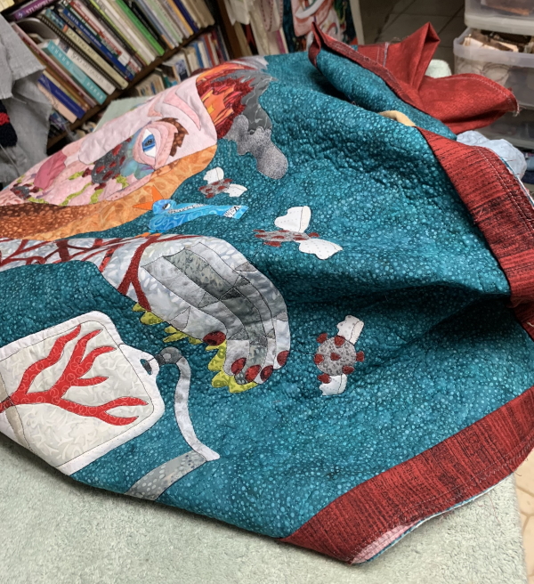 OK, I’m tired (yes, I stayed up too late to finish) and I have a shitload of work to do today (what’s new?) and I’ll be sewing binding during book club tonight…one thing I can do while waiting for a negative test result. I will miss my exercise class tonight…my body really needs it, but maybe I will find one online that works.