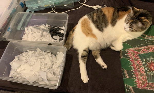 Kitten does not help. She just gets irritated that the boxes are in her way. Calli also does not help.